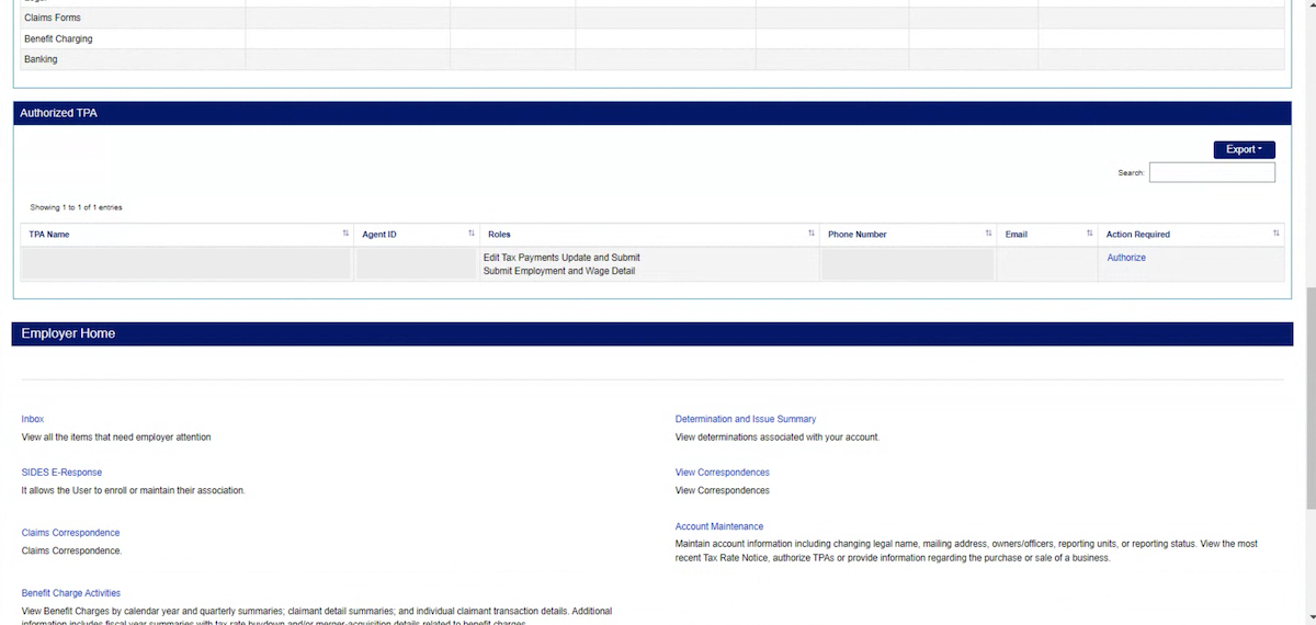 - Scroll to the “Authorized TPA” section of the Employer Home page.