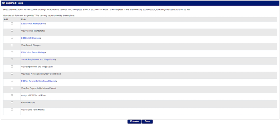 Note: Only one TPA can be assigned to each role in the employer account at one time.