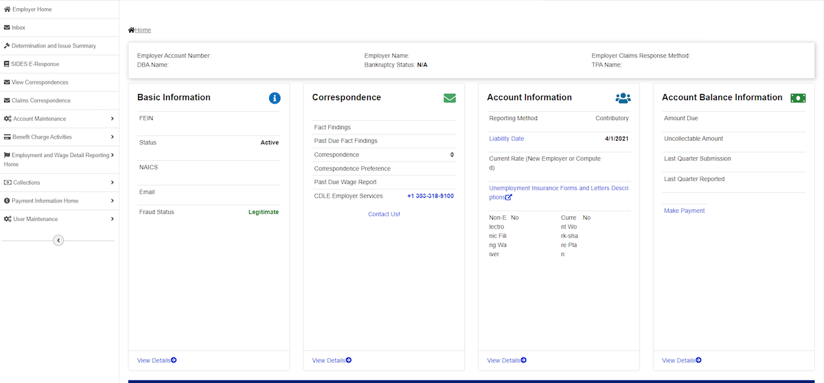 - Click the “View details” link under the employer Account Information section to view your rate notice and rate breakdown.