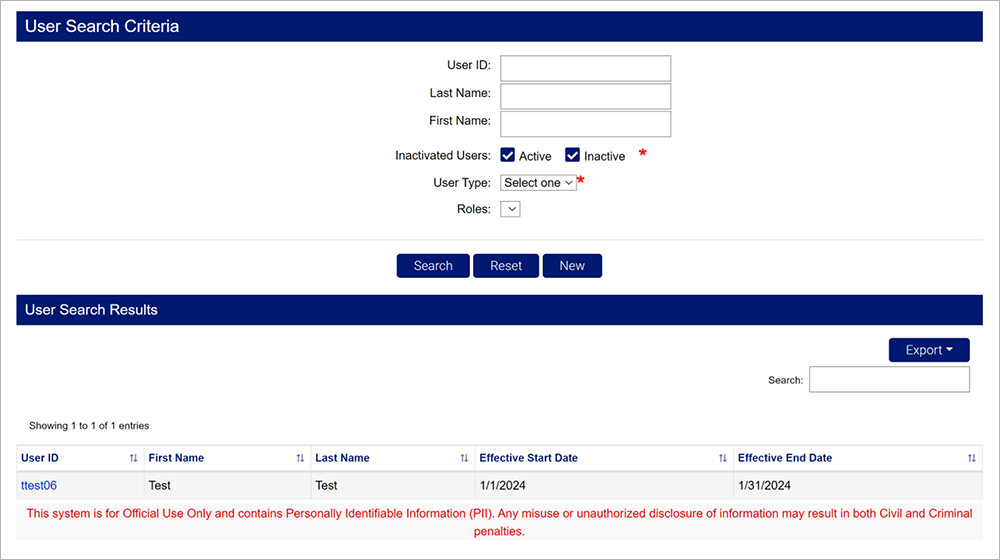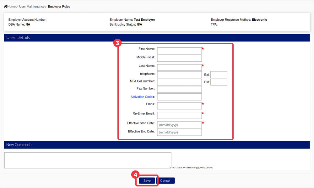 - Effective End Date - The date the new user’s account will no longer be available.