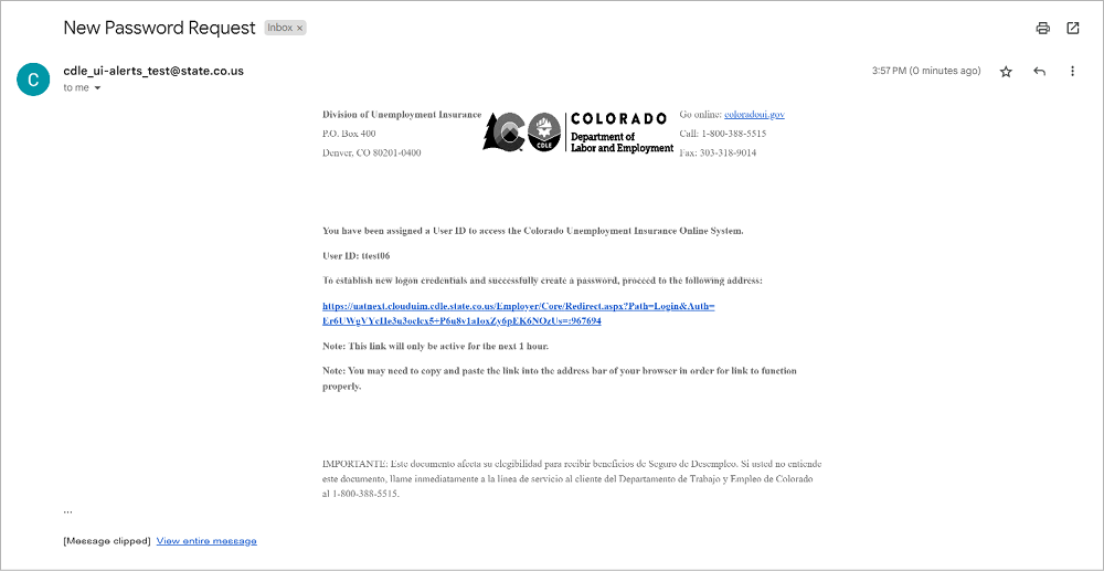 Click the emailed link to be redirected to MyUI Employer+ and enter the activation code provided by the person who initiated the new user account.