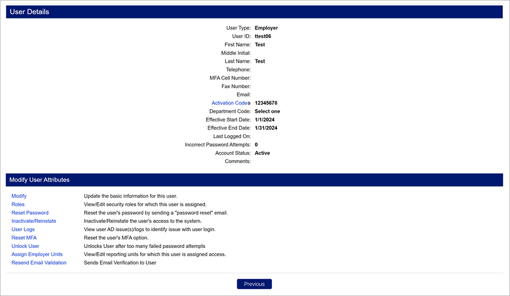 - MFA Cell Number - The new user’s phone number will populate if they select the telephone option when setting up their MFA.