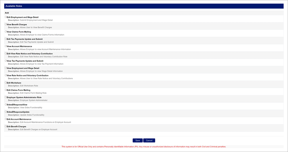 You may select any available roles to add to the user account. The roles include descriptions of the actions the individual can take when that role is added to their profile. Multiple users can be assigned to any role.
